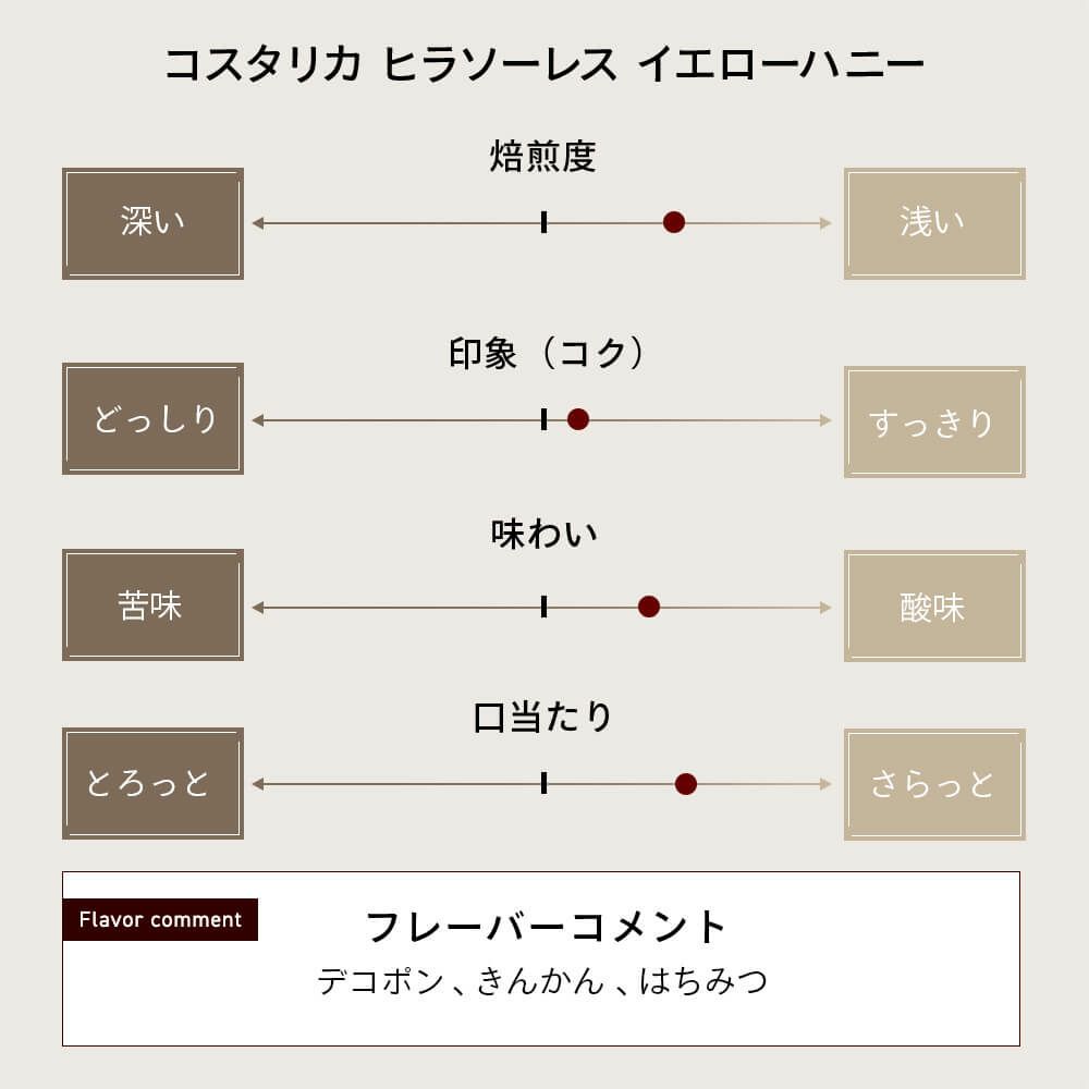 他の画像を見る コスタリカ ヒラソーレス イエローハニー コーヒー豆まとめ買い割:2個で5%、3個で10%、6個で15%OFF 販売価格 ¥ 1,880 税込 〜 販売価格 ¥ 税込 詳細を見る お気に入りに登録する