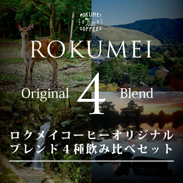 ロクメイコーヒーの日常を豊かにする4種のブレンドコーヒーと、季節のブレンドをお届けするセットです。