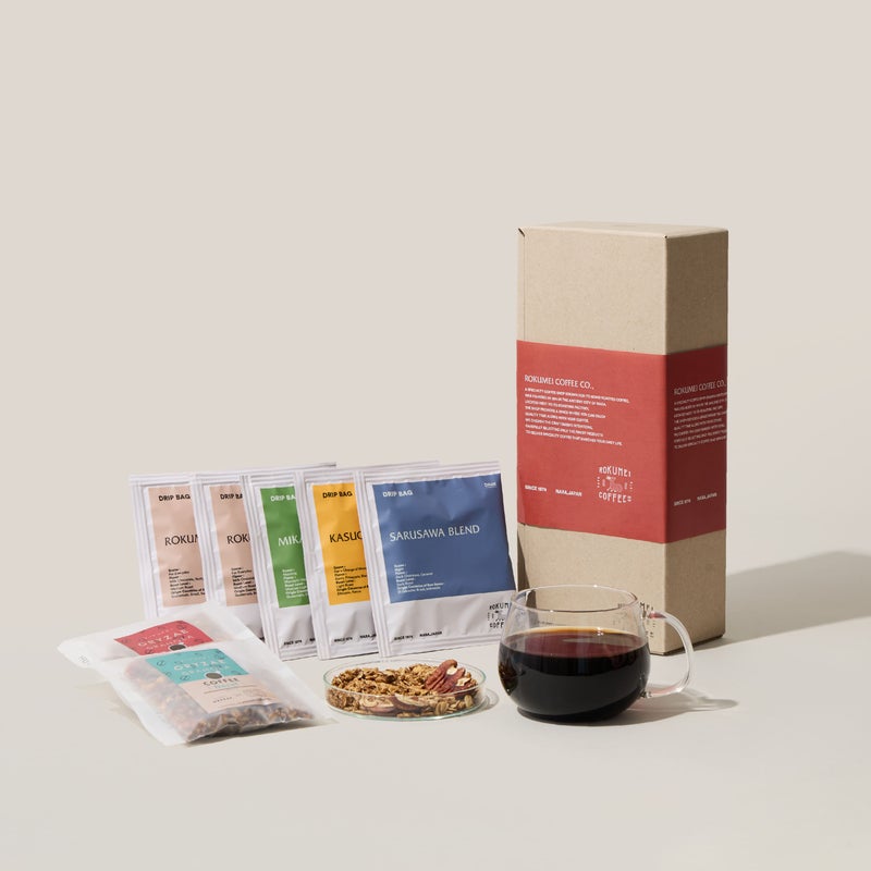 ・ドリップバッグ ロクメイブレンド2袋 原材料(生豆生産国名):グアテマラ・ブラジル・ケニア ・ドリップバッグ ミカサブレンド1袋 原材料(生豆生産国名):コスタリカ、グアテマラ、エチオピア ・ドリップバッグ カスガブレンド1袋 原材料(生豆生産国名):エチオピア、ケニア ・ドリップバッグ サルサワブレンド1袋 原材料(生豆生産国名):ブラジル、エルサルバドル、インドネシア